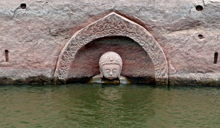 A drop in the water levels at the Hongmen Reservoir in China’s Nancheng County in the city of Fuzhou has revealed an ancient Buddha statue, which archaeologists believe is around 600 years old.